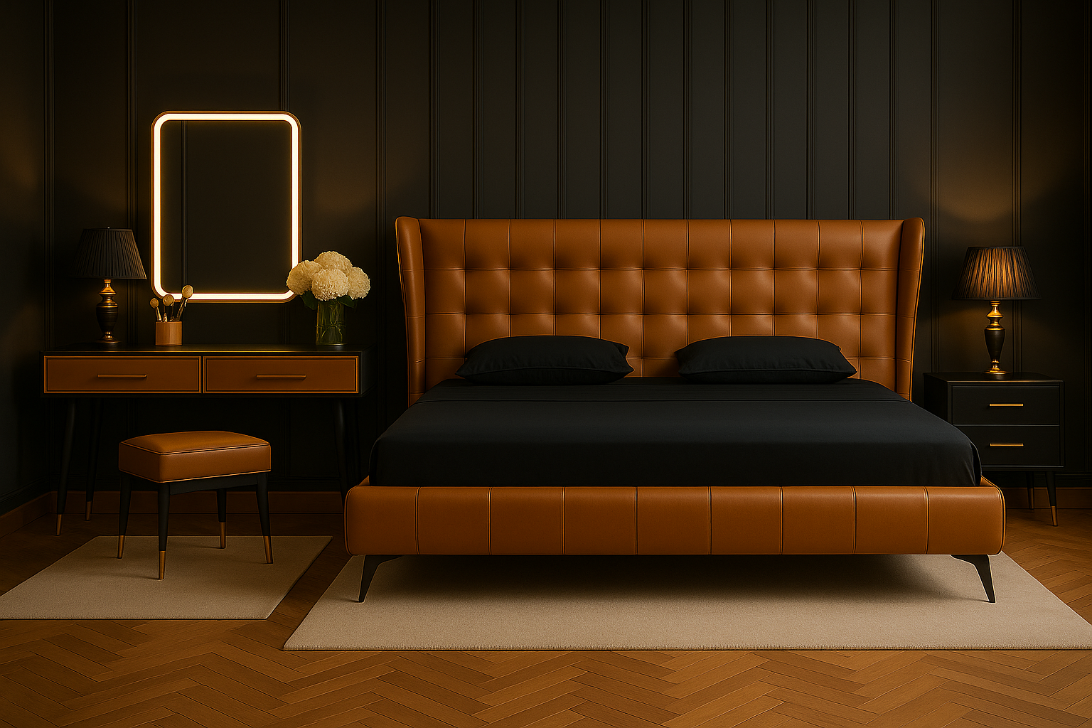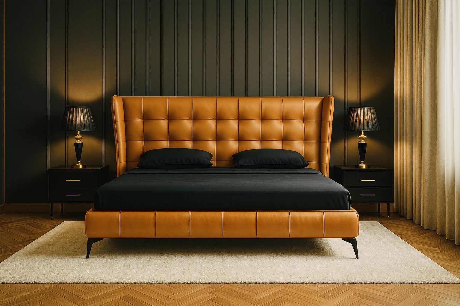 Meet the Cognac Noir Wing Bed Set—a bold, modern classic. The cognac