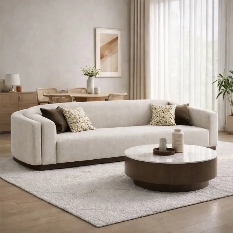 Bring refined elegance and modern comfort into your home with this beautifully designed off-white curved sofa. Featuring a soft neutral tone, rounded silhouette, and premium fabric finish, this sofa creates a warm and sophisticated centerpiece for any living space.