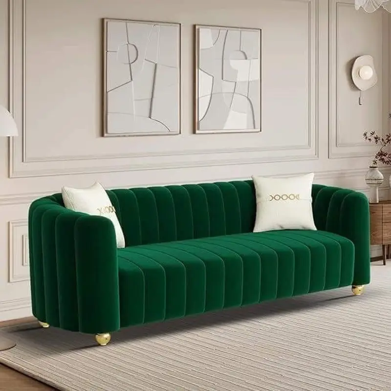 HomeAll Products BS-22 Luxury Green Velvet 3 Seater Sofa