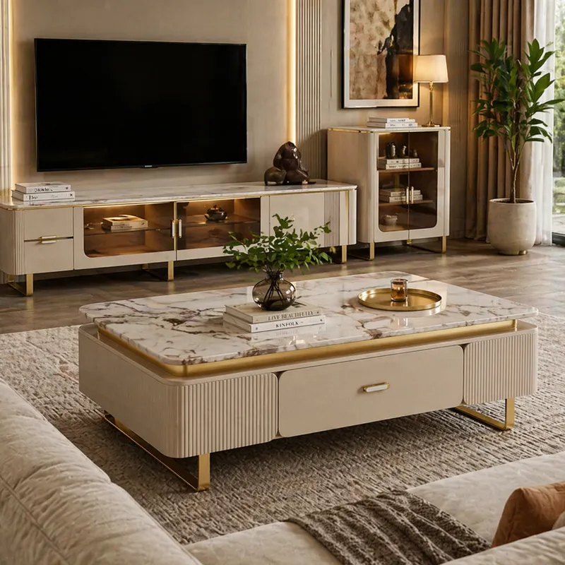 Elevate your living space with this stunning luxury coffee table, designed with a premium marble top and elegant gold detailing. Combining modern aesthetics with functional storage, this table brings sophistication and style to any contemporary home.