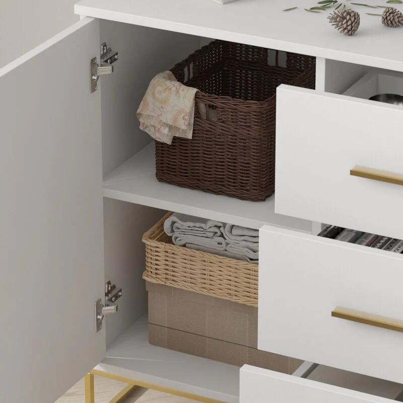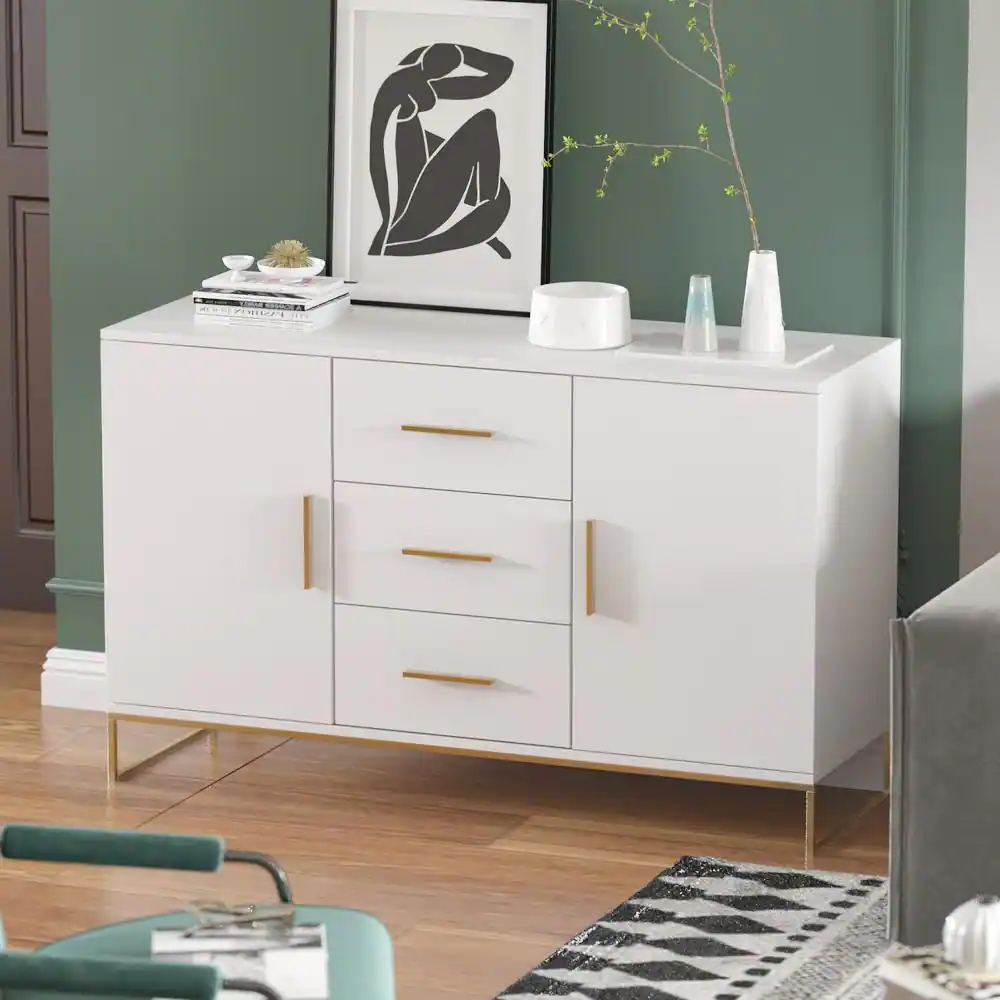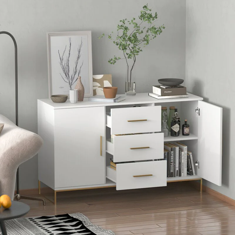 - Pairing function with fashion, this buffet table is sure to tie your ensemble together, while offering room to store and showcase entertaining essentials